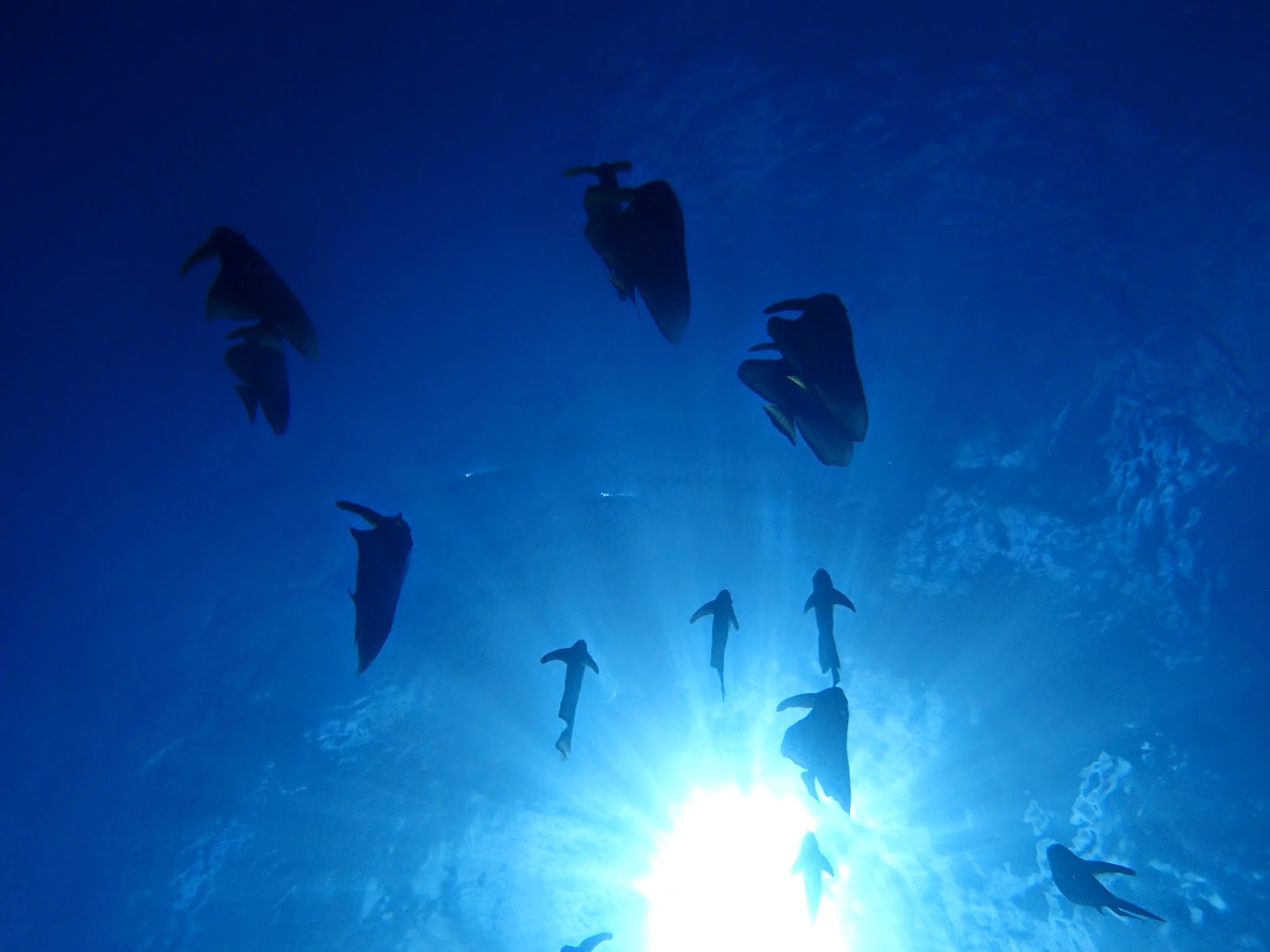 海域公園を出た後は父島の東側へイルカを探しに行こうと思ったところマンタを発見し、マンタスイム!